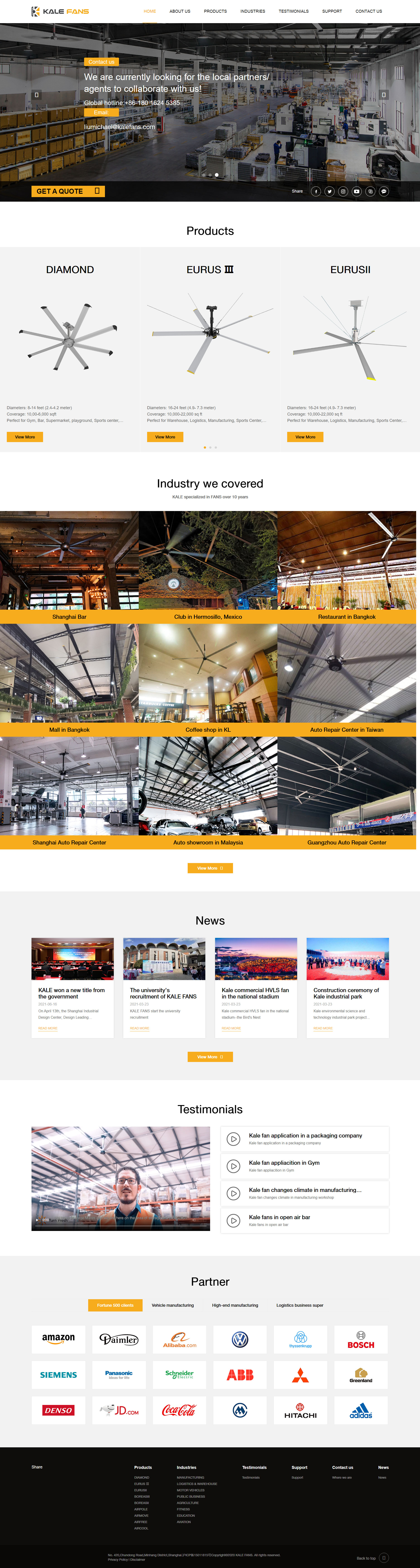Our history: As a top leader in the HVLS fan industry, we were born in 2010. Since then, we've been specializing in manufacture of high-grade HVLS FANS for 10+ years. What we focus on is product availability and market reputation, insisting in adopting the finest technology, the best design and the most advanced concept to do the best product in the world.