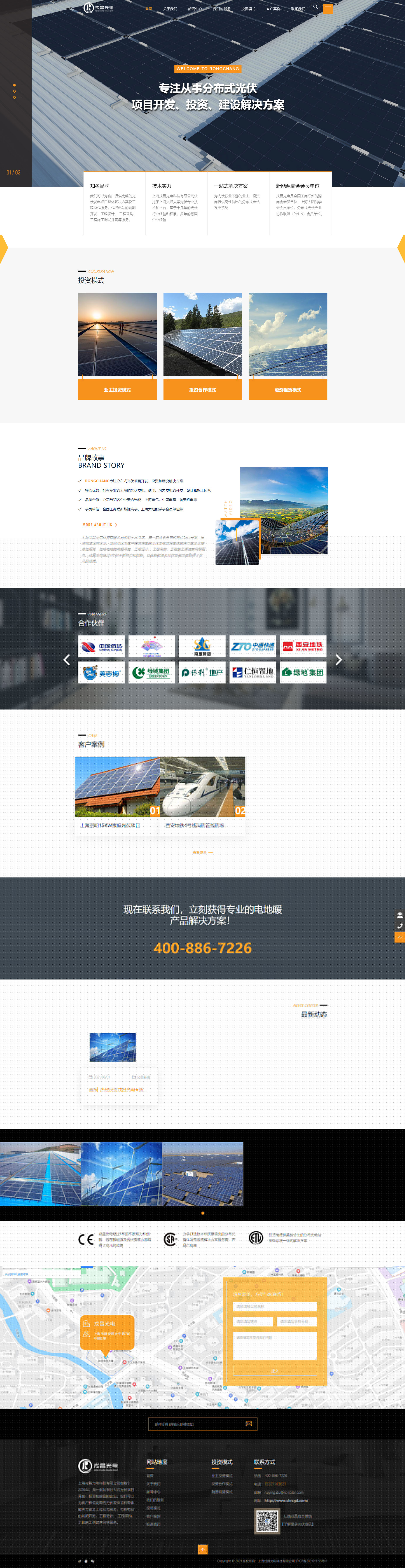上海戎昌光電科技有限公司創始于2016年,是一家從事分布式光伏項目開發、投資和建設的企業。我們可以為客戶提供完整的光伏發電項目整體解決方案及工程總包服務,包括電站的前期開發、工程設計、 工程采購、工程施工調試并網等服務。戎昌光電經過5年的不斷努力和創新,已在新能源及光伏安裝方面取得了非凡的成績。