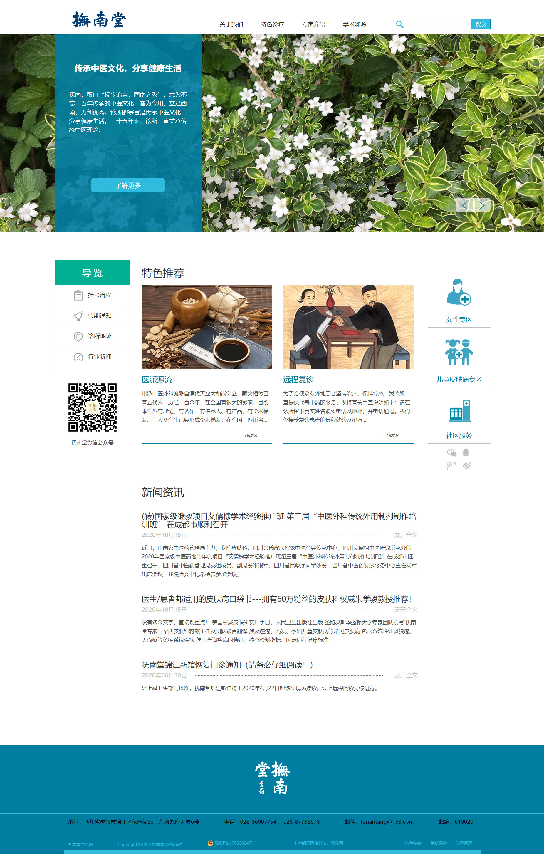 撫南診所成立于1993年,由中醫(yī)外科、皮膚科醫(yī)生、四川省十大名中醫(yī)之一的艾儒棣教授主持。撫南,取自“撫今追昔,西南之秀”,意為不忘千百年傳承的中醫(yī)文化,昔為今用,立足西南。診所的宗旨是傳承中醫(yī)文化,分享健康生活。二十五年來,診所一直秉承傳統(tǒng)中醫(yī)理念,辨證施治、藥材道地、悉心服務,盡力為每一位求醫(yī)者緩解病苦,在老百姓中有較好的信譽和口碑。
