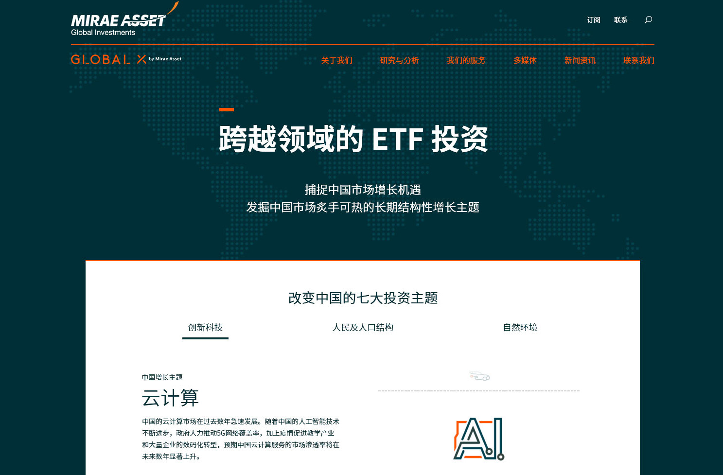 未來資產(chǎn)環(huán)球投資(未來資產(chǎn))是一間資產(chǎn)管理公司,截至2020年9月底,資產(chǎn)管理規(guī)模逾1,620億美元。公司提供多種投資產(chǎn)品,包括互惠基金、交易所買賣基金(ETF)和另類投資產(chǎn)品。