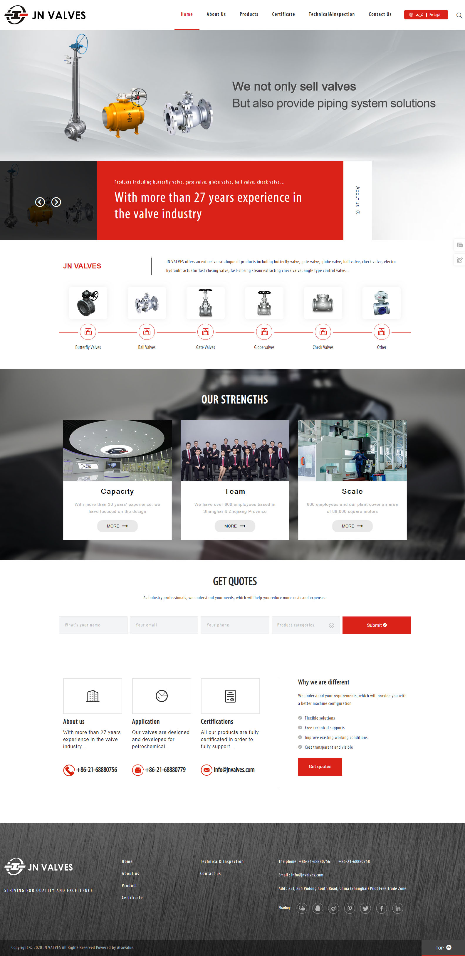 JN VALVES (China) Co., Ltd is the core holding subsidiary of Jiangnan Holding Group. It is an international trade center based in Shanghai, an international metropolis. We have over 600 employees and our plant cover an area of 88,000 square meters in the core industrial district of Wenzhou, Zhejiang Province. With more than 30 years’ experience, we have focused on the design, research and development, manufacturing, sales and service of industrial valves. We are committed to providing customers with a complete set of industrial valve solutions. We provide various industrial valves that comply with API, EN, GB, ISO, ASME and other international standards. Our products cover butterfly valves, ball valves, gate valves, globe valves, check valves, regulating valves, nuclear power valves and various special valves. We have a research and development team led by academicians of the Chinese Academy of Engineering and have obtained more than 120 patents. The series of industrial valve products are exported to more than 50 countries and regions, and long-term strategic partnerships have been established with dozens of internationally renowned end users.