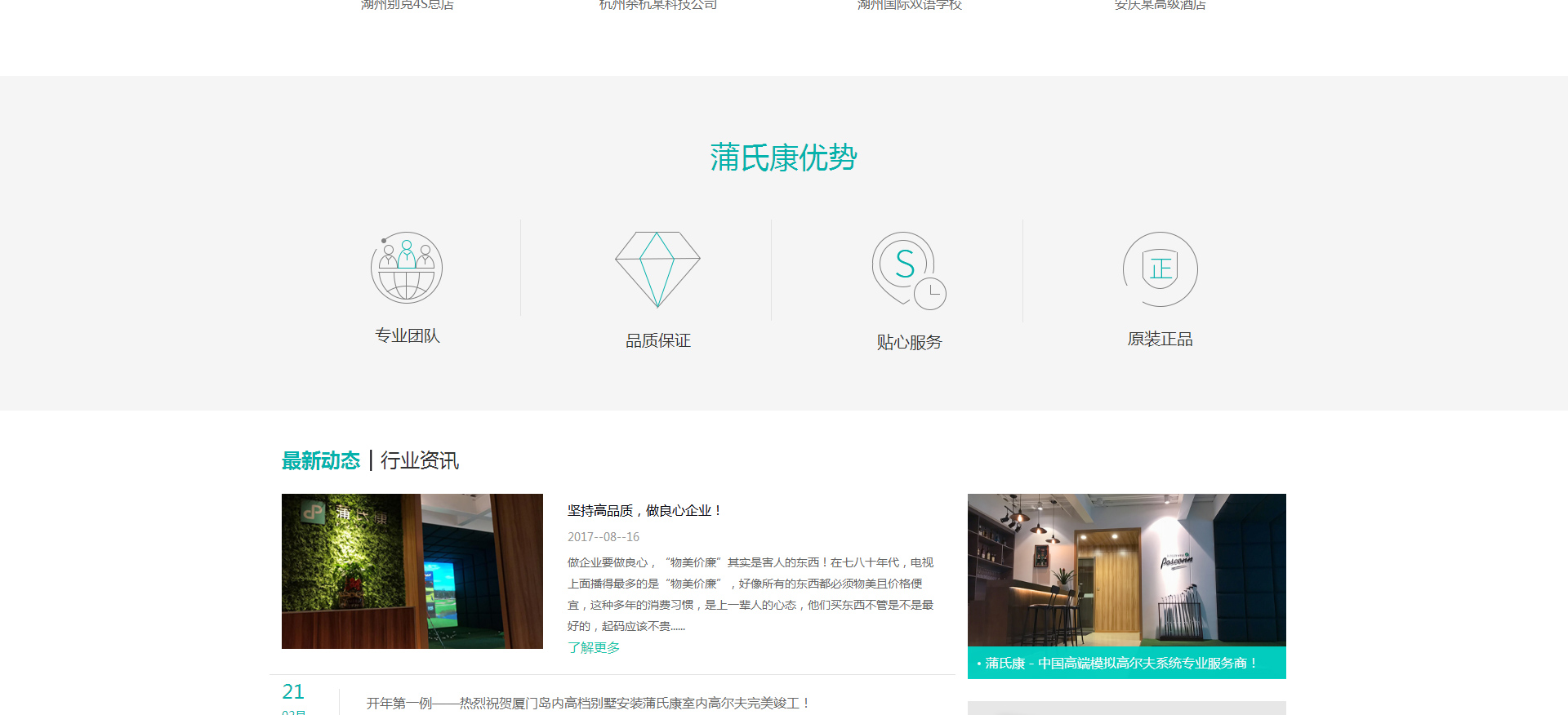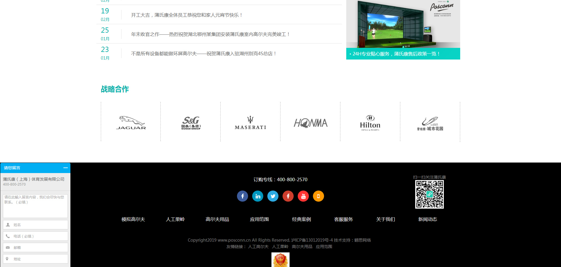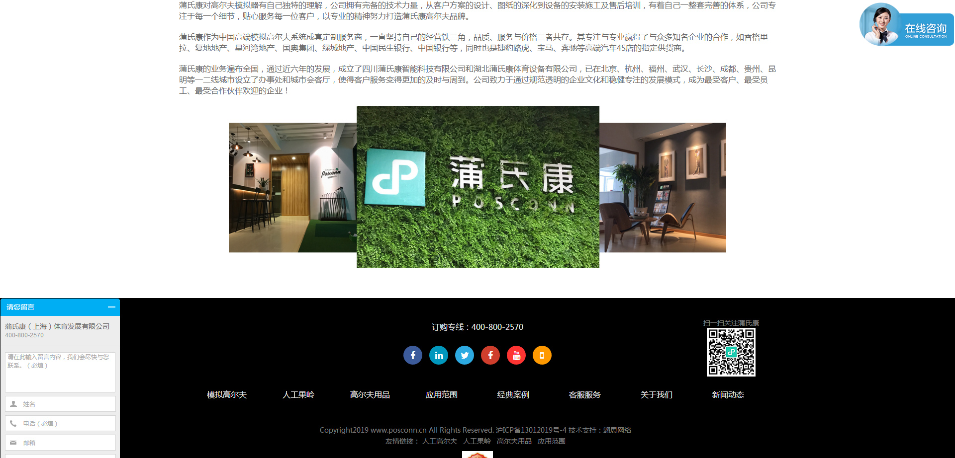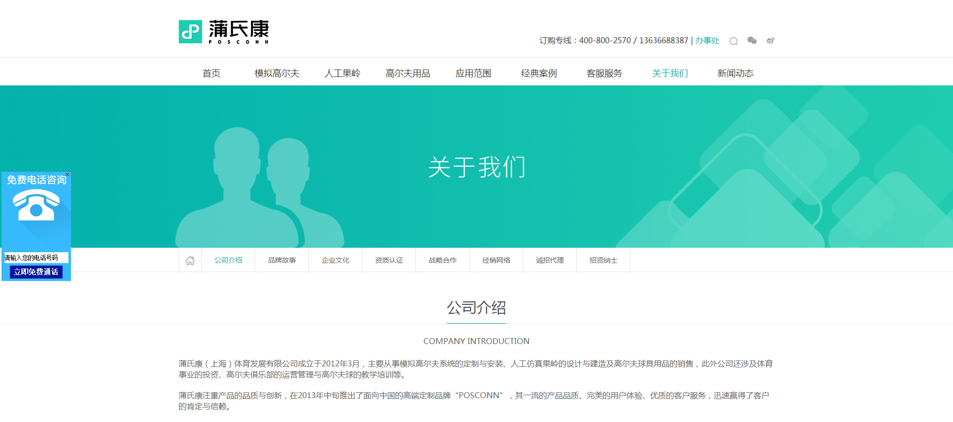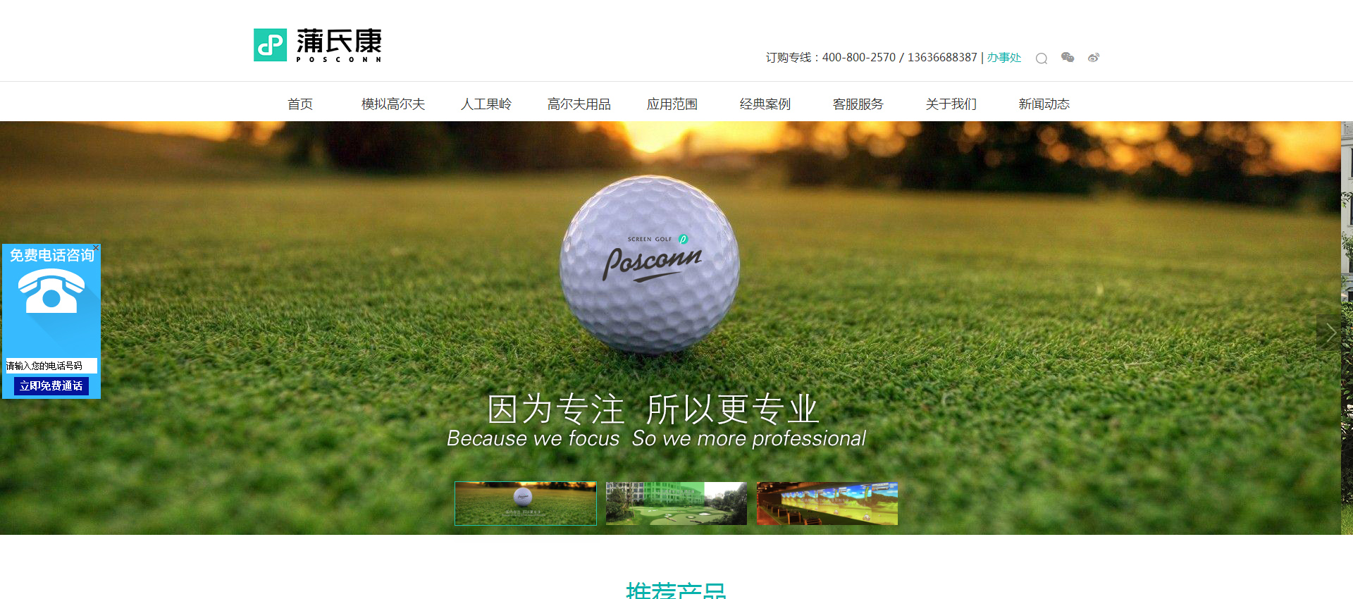 蒲氏康(上海)體育發展有限公司成立于2012年3月,主要從事模擬高爾夫系統的定制與安裝、人工仿真果嶺的設計與建造及高爾夫球具用品的銷售,此外公司還涉及體育事業的投資、高爾夫俱樂部的運營管理與高爾夫球的教學培訓等。蒲氏康注重產品的品質與創新,在2013年中旬推出了定制品牌“POSCONN”,其產品品質、用戶體驗、優質的客戶服務,迅速贏得了客戶的肯定與信賴。