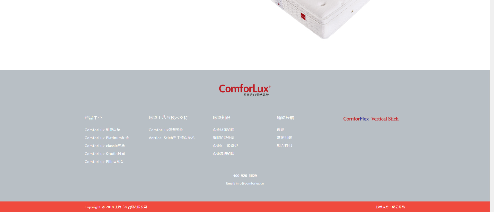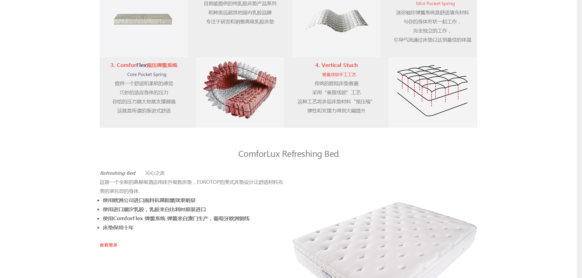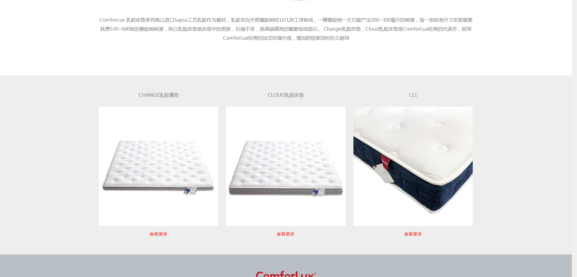 ComforLux品牌專注于研發和銷售高級乳膠床墊、乳膠薄墊和乳膠枕頭及相關產品,結合8年的行業經驗和重多歐美合作伙伴的支持,ComforLux品牌目前能提供的純乳膠床墊產品系列和種類遠超其他國內乳膠品牌。它不但提供多個不同厚度的產品,而且還提供不同硬度,不同結構甚至不同工藝的乳膠產品,以較大程度滿足消費者多樣化的需求。