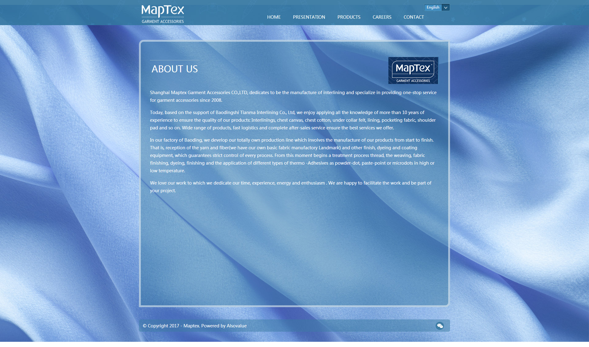 Shanghai Maptex Garment Accessories CO.,LTD, dedicates to be the manufacture of interlining and specialize in providing one-stop service for garment accessories since 2008.Today, based on the support of Baodingshi Tianma Interlining Co., Ltd, we enjoy applying all the knowledge of more than 10 years of experience to ensure the quality of our products: Interlinings, chest canvas, chest cotton, under collar felt, lining, pocketing fabric, shoulder pad and so on. Wide range of products, fast logistics and complete after-sales service ensure the best services we offer.